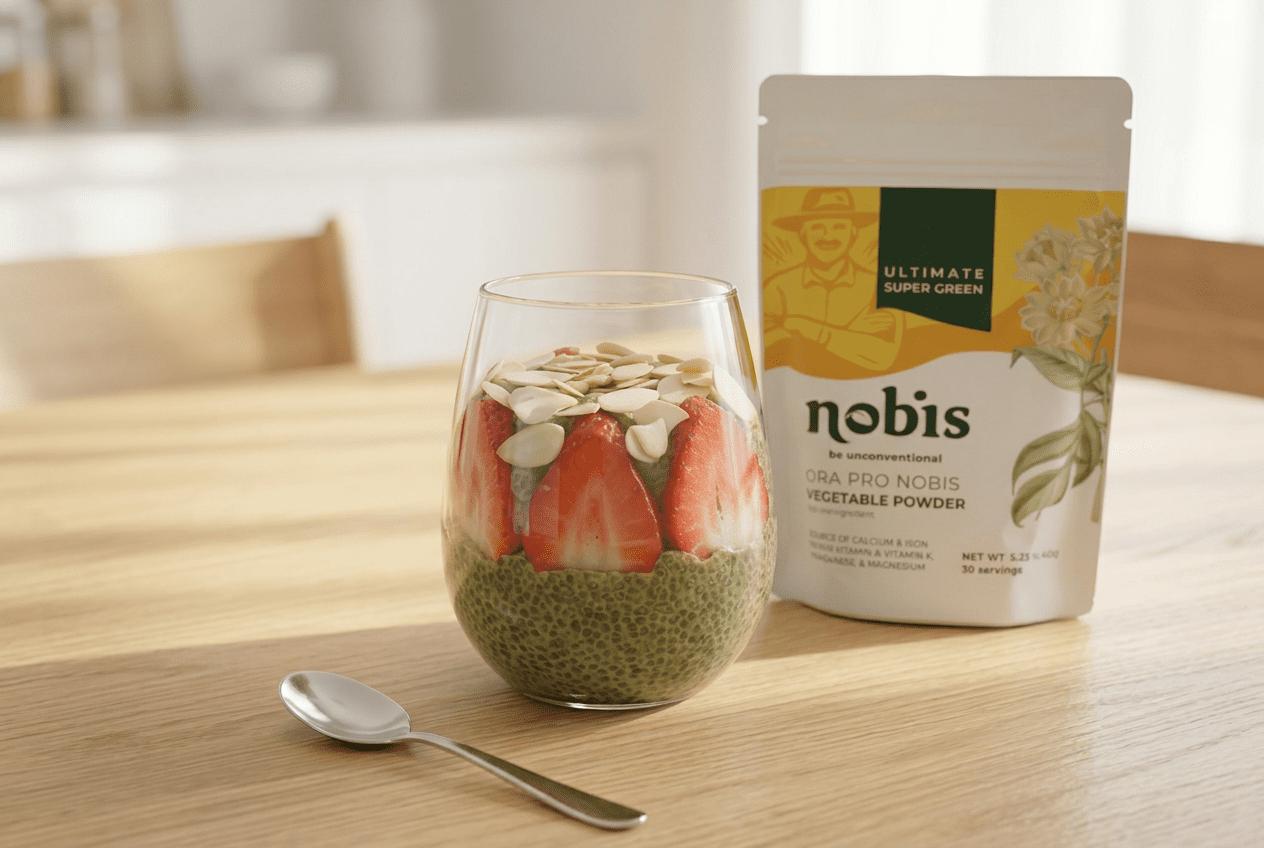 A simple, nourishing chia pudding with a creamy texture and a boost from ora pro nobis.